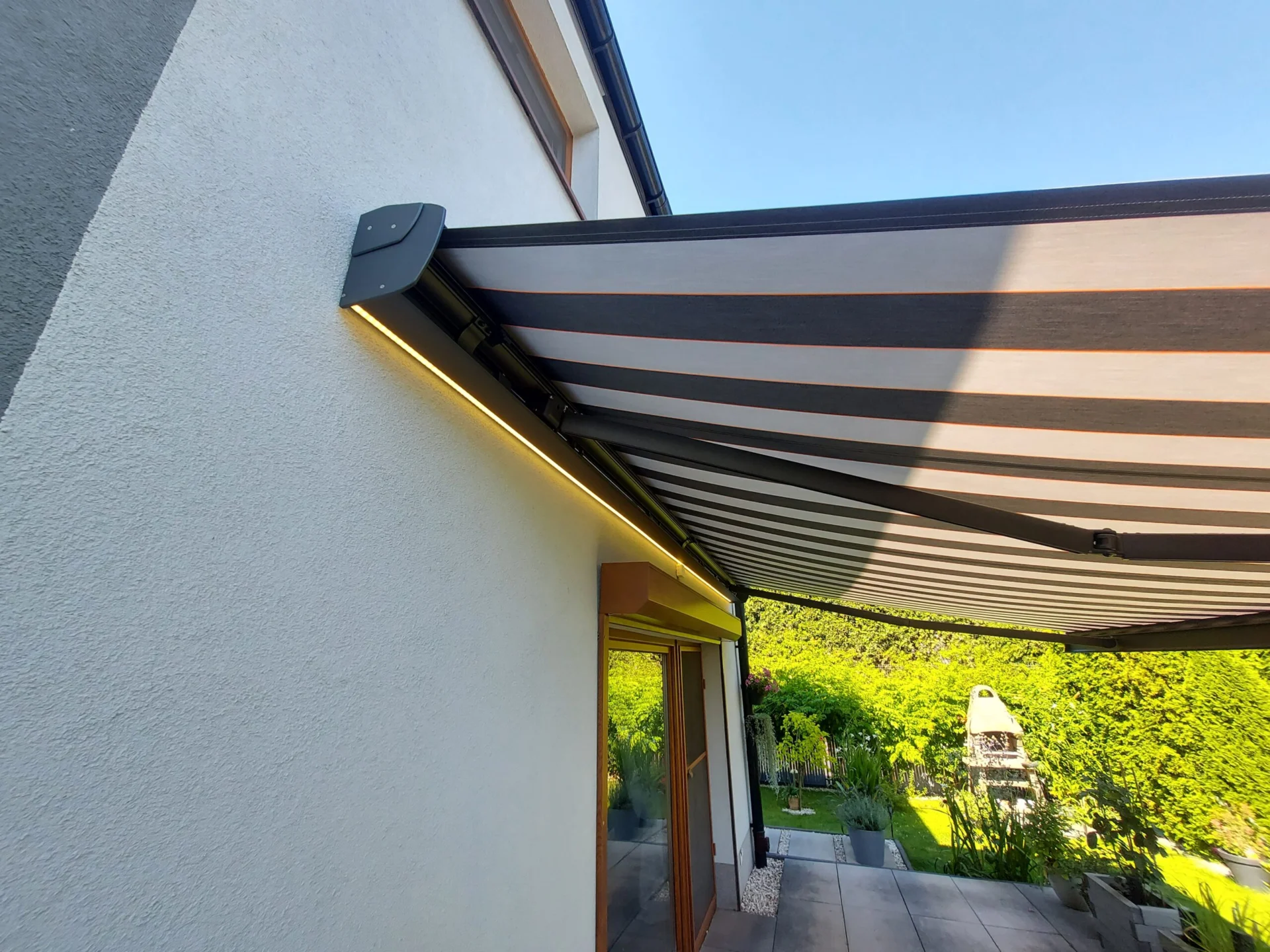 Markizy tarasowe to przede wszystkim osłony przeciwsłoneczne, które z założenia nie są przeznaczone do ochrony przed deszczem, jednak dzięki impregnacji poszycia i przy odpowiednim kącie