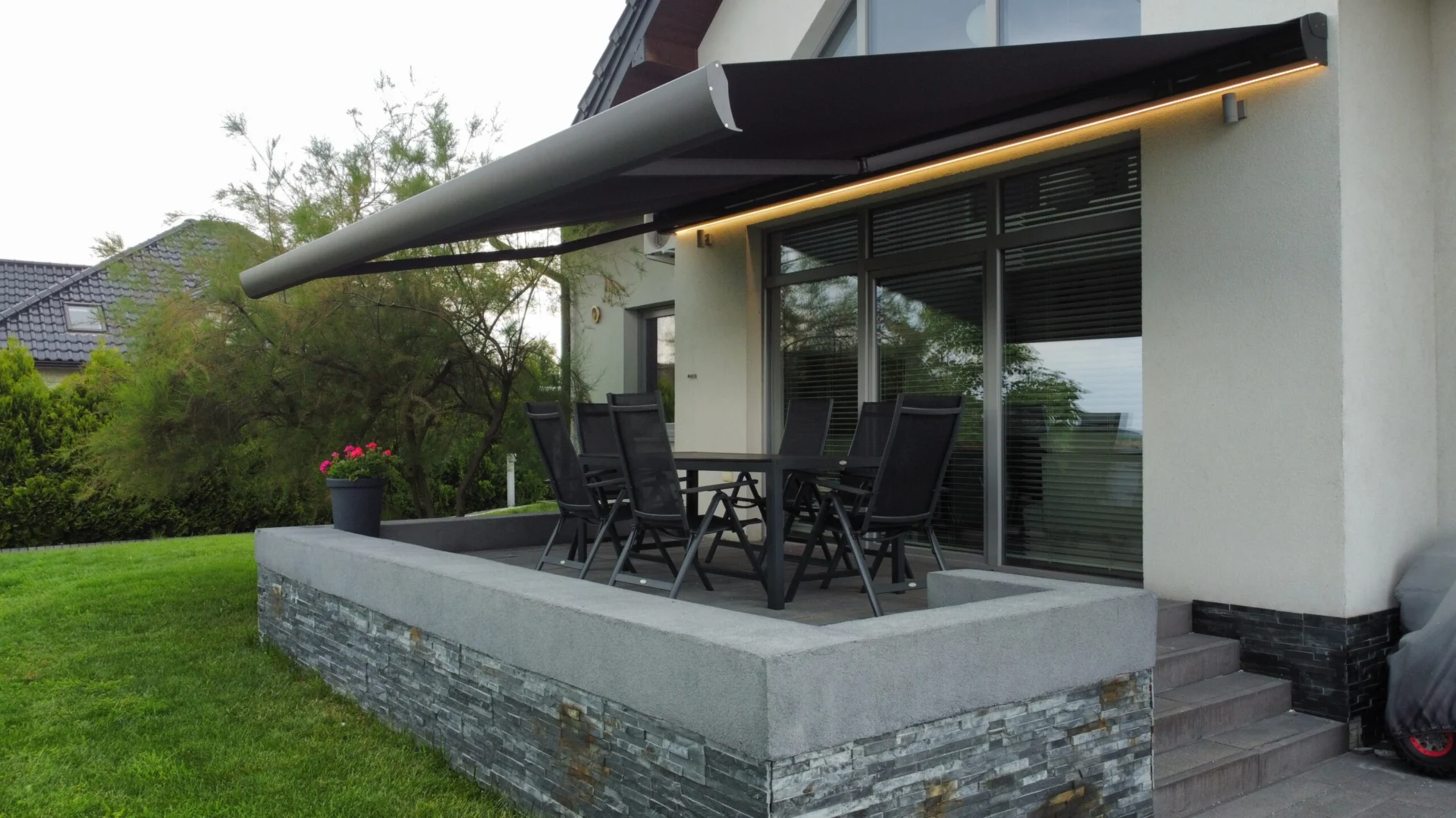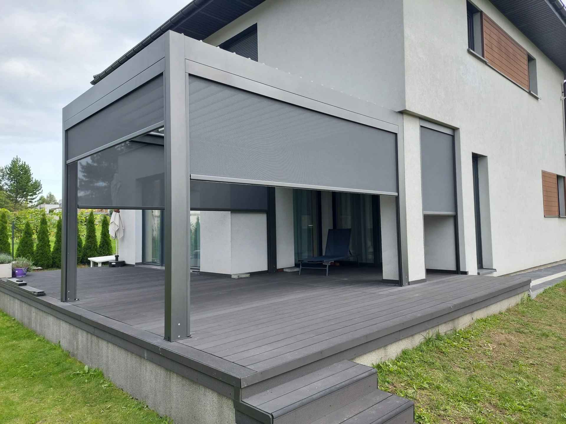 To efektowne zadaszenie tarasów ogrodowych, które w zależności od potrzeb może znaleźć szereg zastosowań. Idealnie nadające się na słoneczne dni oraz na deszczowe.