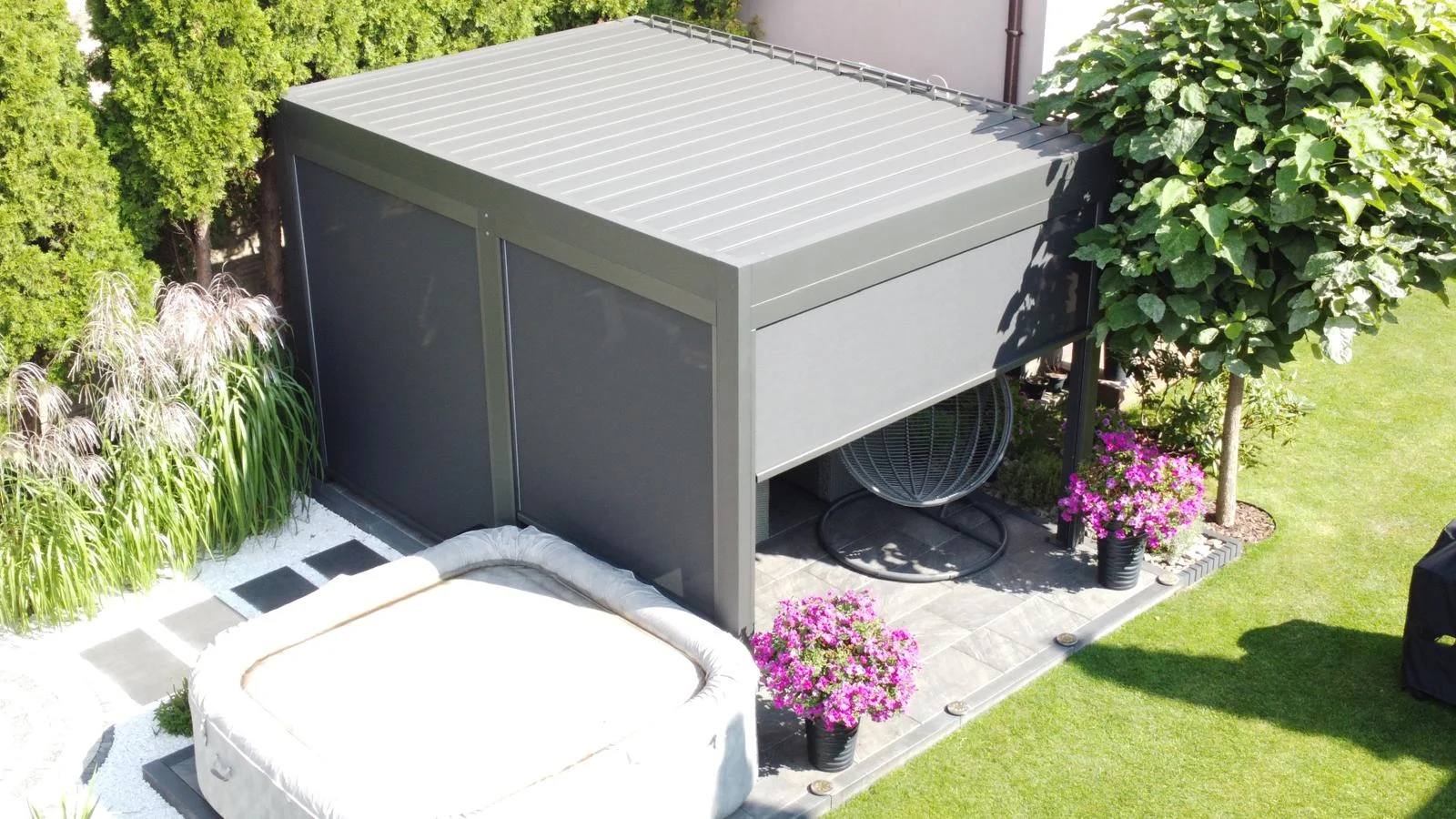 To efektowne zadaszenie tarasów ogrodowych, które w zależności od potrzeb może znaleźć szereg zastosowań. Idealnie nadające się na słoneczne dni oraz na deszczowe.