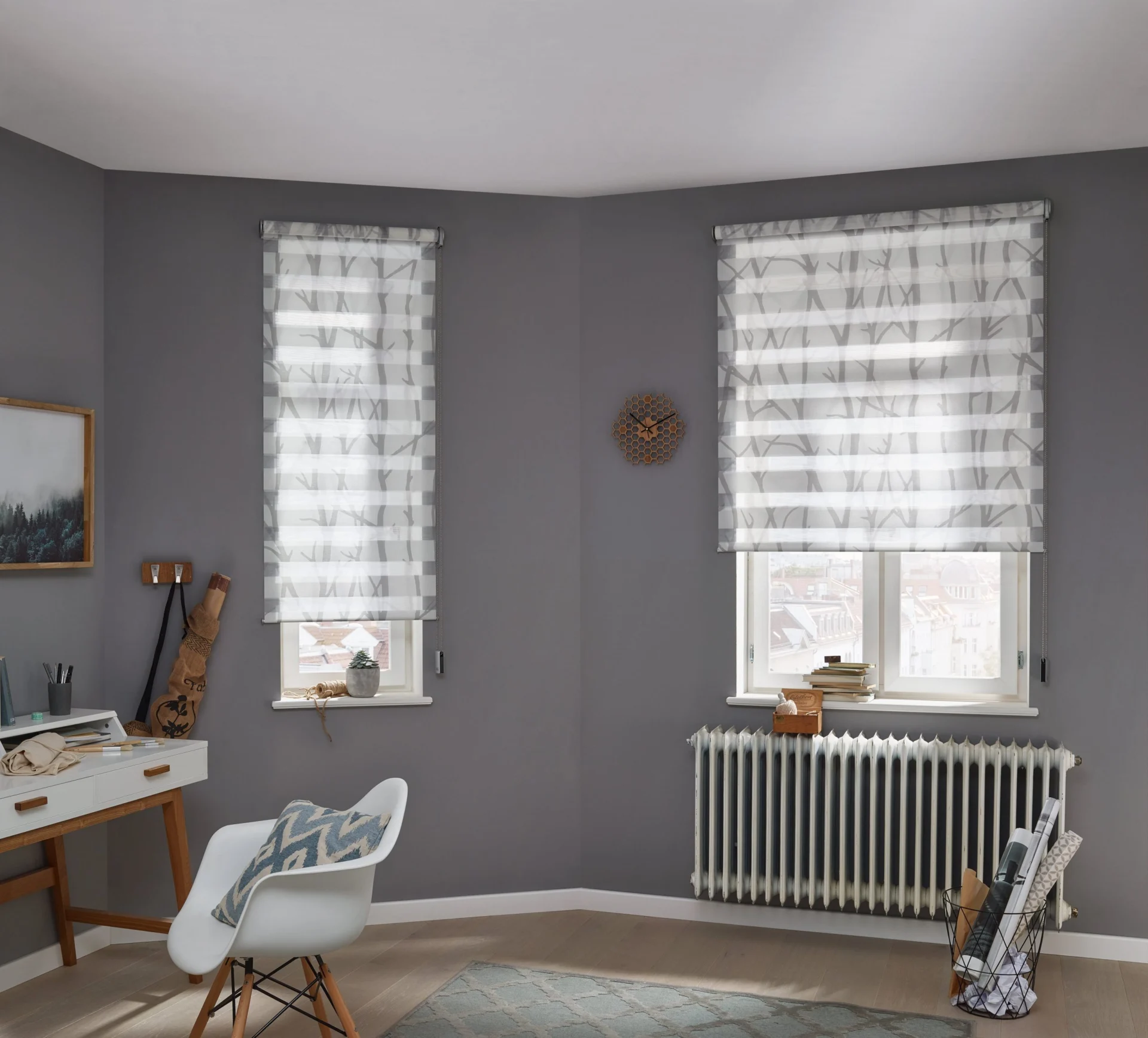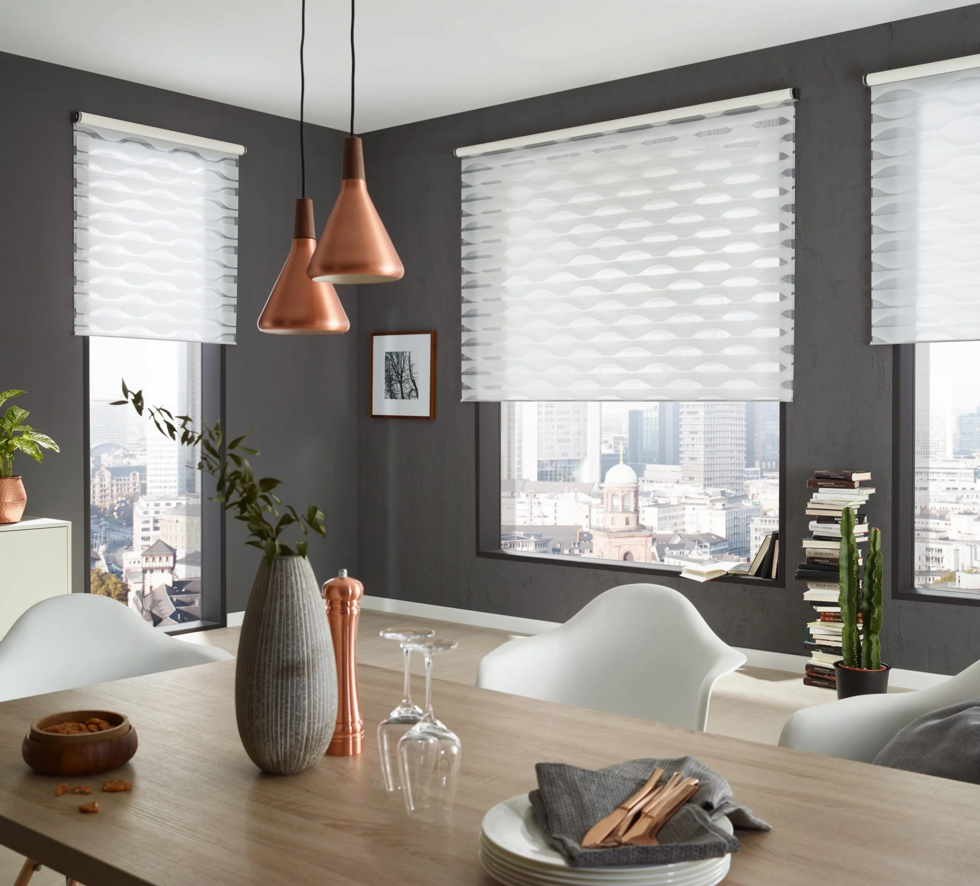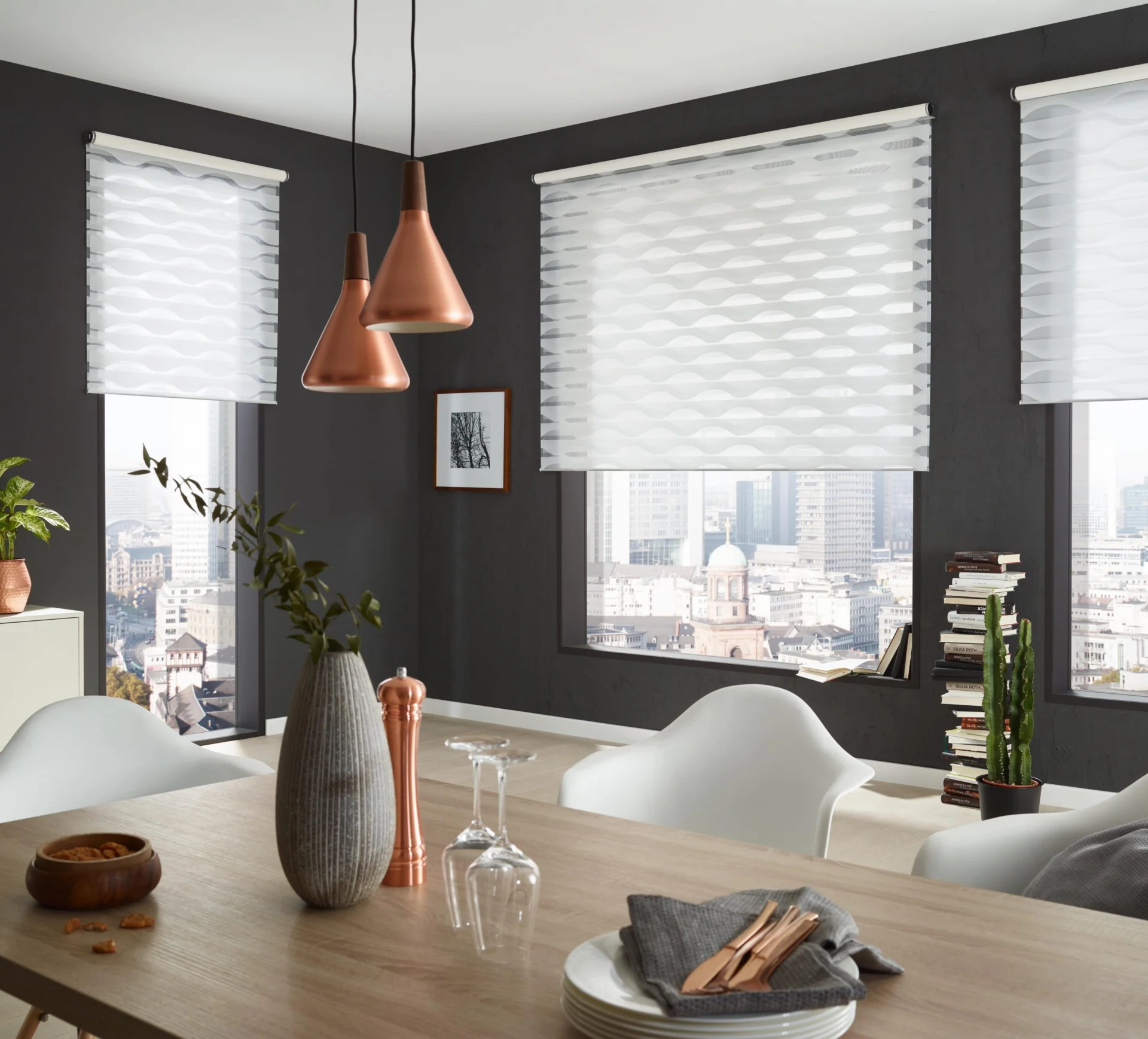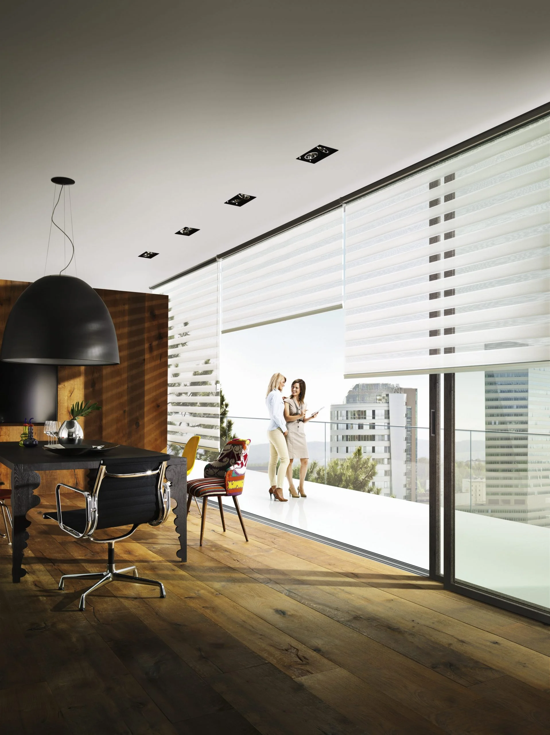 Przejrzyste linie, zredukowany design i łatwa obsługa sprawiają, że rolety są uniwersalnym geniuszem, który optymalnie dopasowuje się do każdej sytuacji w pomieszczeniu. W końcu nadaje się tak samo do prostokątnych standardowych okien, jak i do całych szklanych fasad.