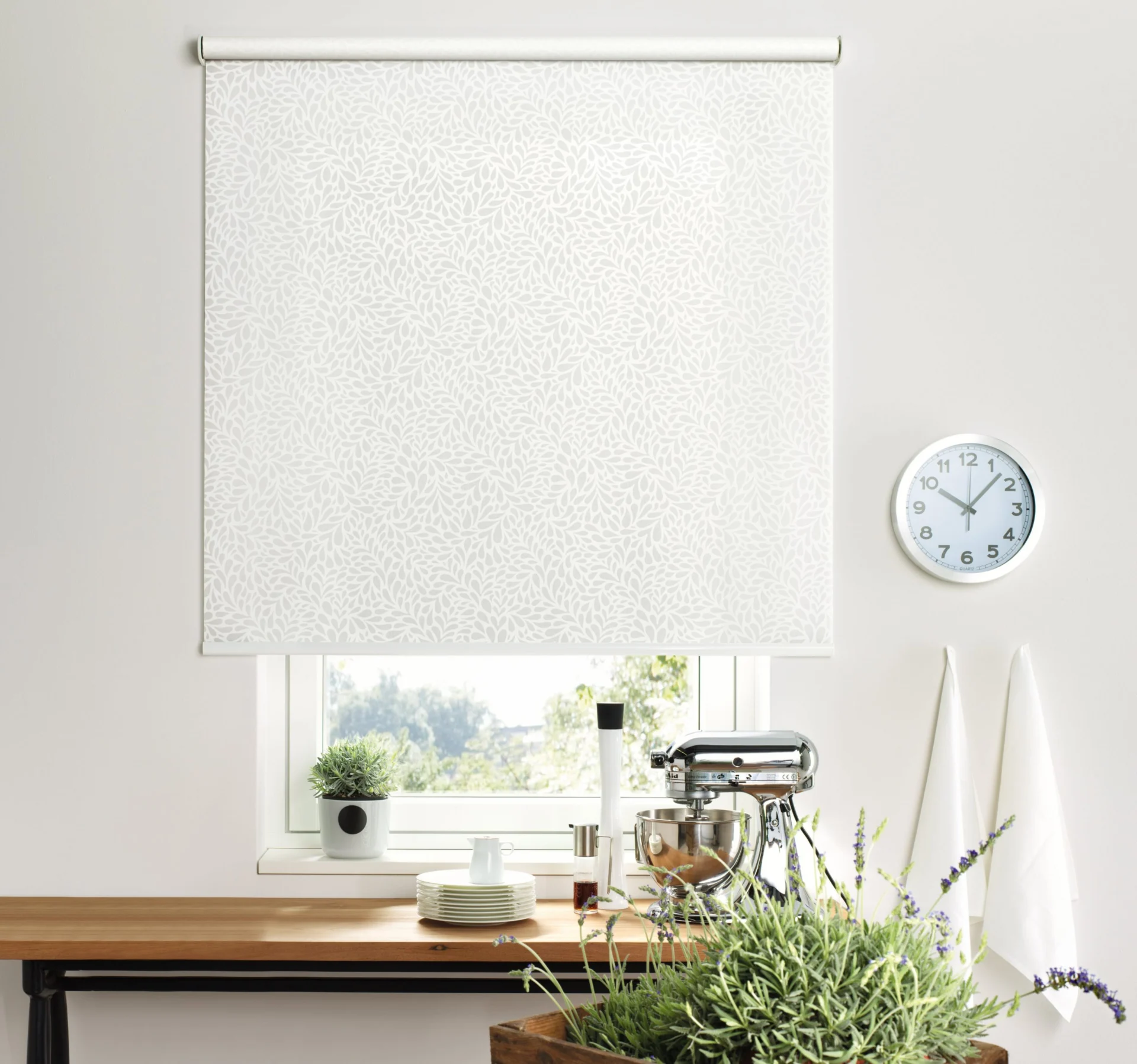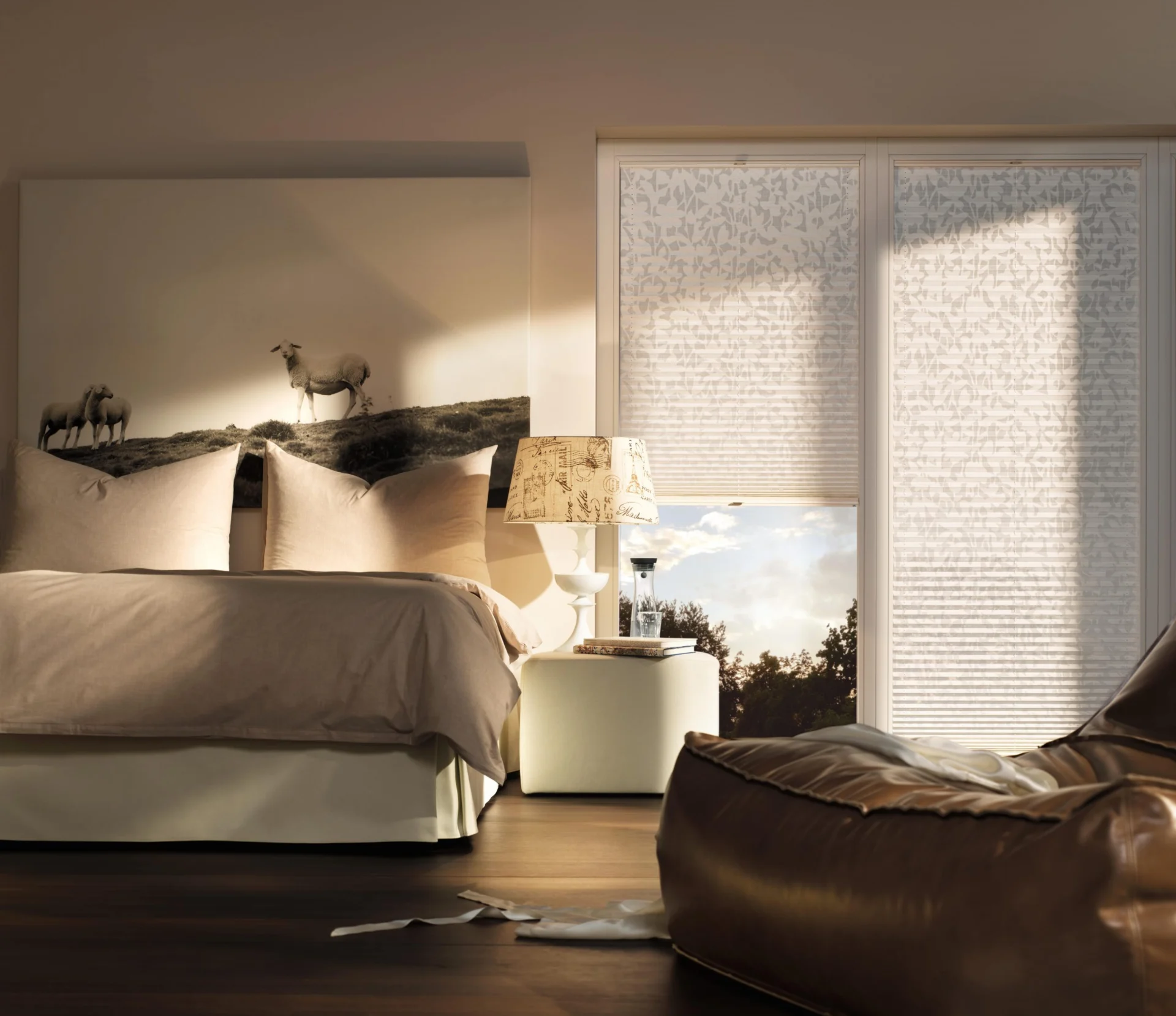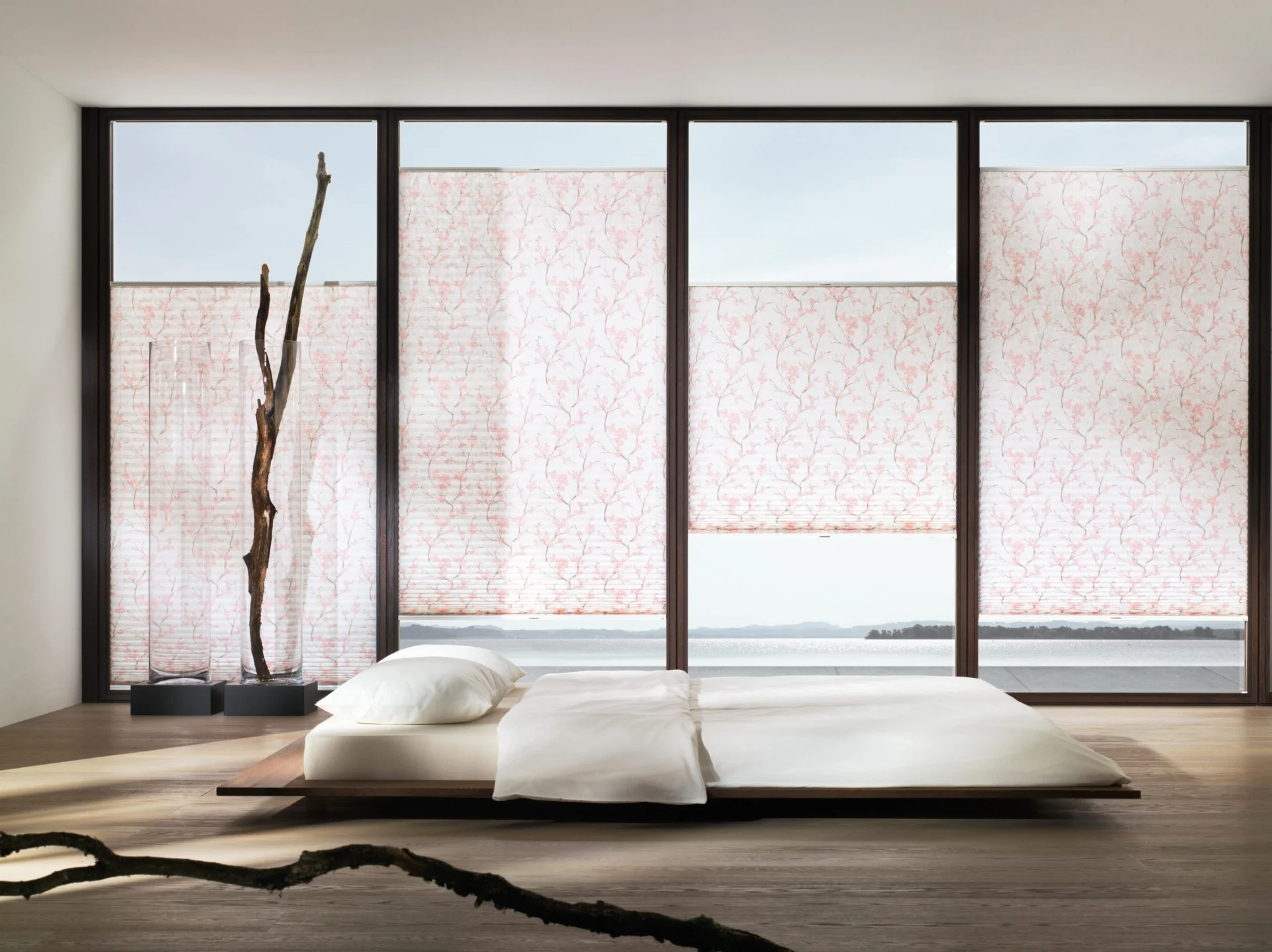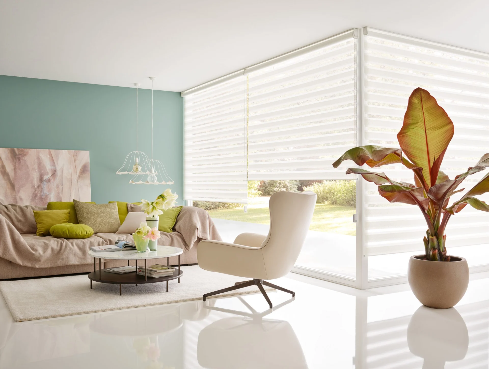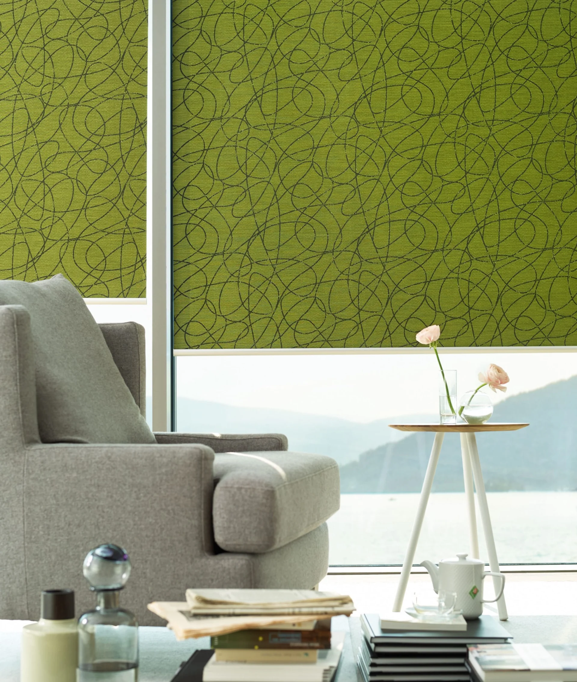 Naprzemiennie kryjące i transparentnie tkane tkaniny umożliwiają płynną regulację światła, aby oświetlenie pomieszczenia było przyjemniejsze.