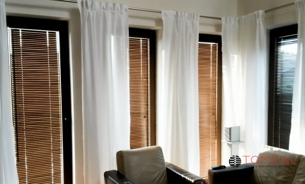 – żaluzje bambusowe są cieńsze i lżejsze od drewnianych, dlatego świetnie sprawdzą się przy dużych gabarytach żaluzji
